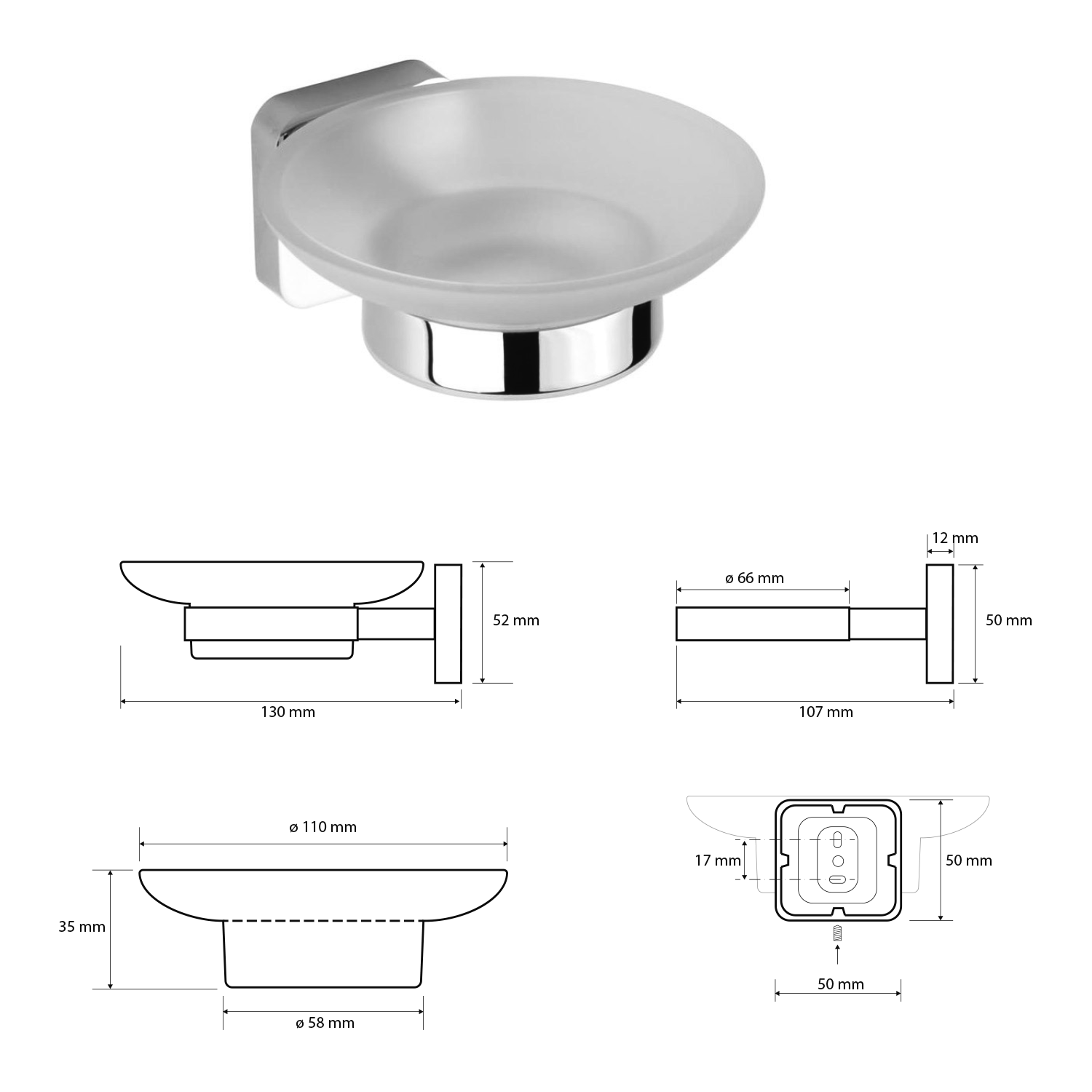INSIA mýdlenka, mléčné sklo, chrom