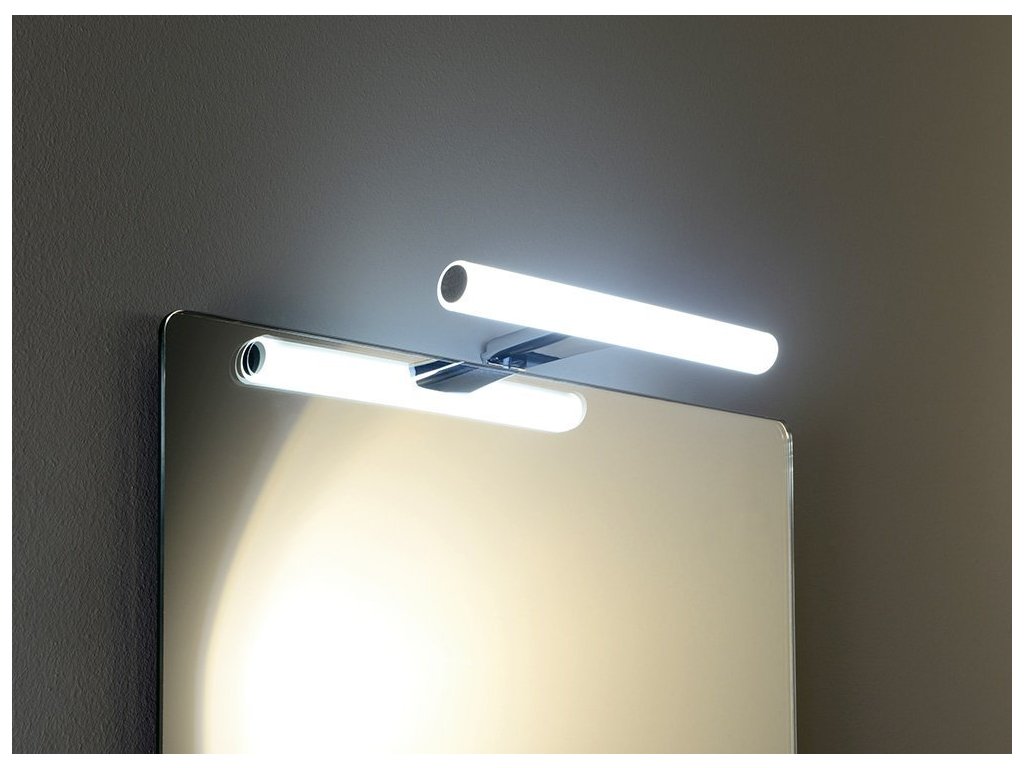 Moderní svítidlo bez LED driveru, připojuje se přímo na 230 V pomocí spojovacího boxu s ochranou IP44. Standardně se dodává s držákem za rám zrcadla nebo na zeď. Součástí balení je i univerzální držák, pomocí kterého lze instalovat svítidlo na galerku nebo přímo na zrcadlo (max. tloušťka zrcadla je 6 mm).