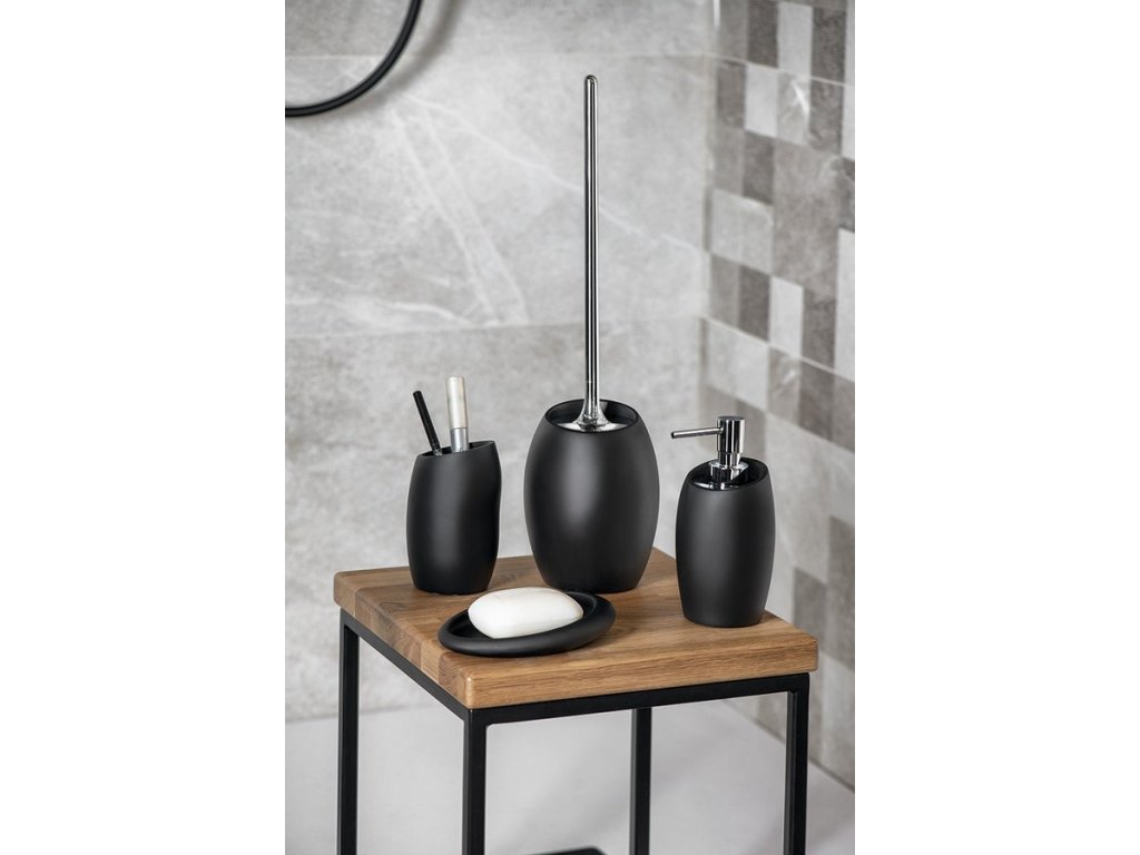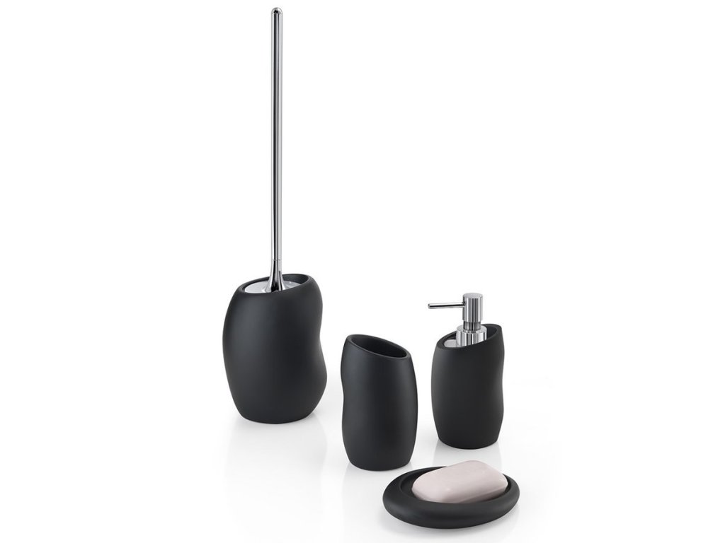 Koupelnové doplňky ISIDE představují esteticky zdařilý design kombinující plnou oblost s neobvyklým projmutím. Mýdlenka evokující vyfrézovaný oblázek lze v koupelně použít i jako miska pro odkládání šperků. Na dotek příjemné díky hladkému povrchu, vyrobené z polyresinu s příměsí písku, čímž získaly na stabilitě, a v černém provedení doplněné chromem jsou doplňky ISIDE naprosto úchvatné. Zvláště se hodí do koupelny ve stylu spa.