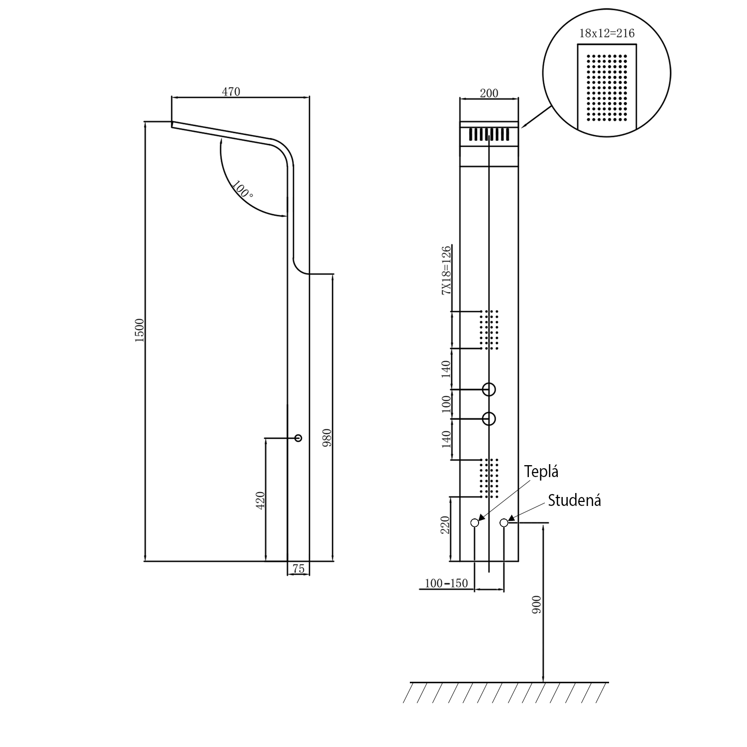| Průtok (3 bar): Boční trysky: | 12.000 |