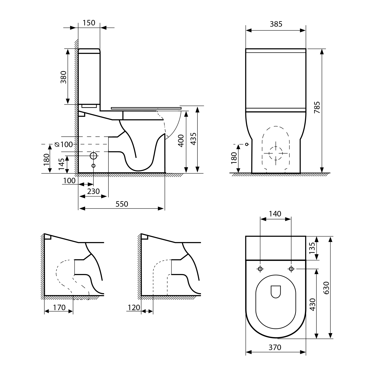 JALTA WC kombi, Rimless, spodní/zadní odpad, bílá