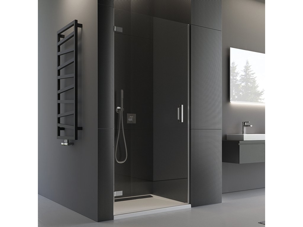 Bezrámová sprchová zástěna od společnosti RONAL splňuje vysoké nároky na design a individuální řešení koupelny. Kvalitní materiály jako masivní chromované panty (na vnitřní straně skla zapuštěné), 8mm bezpečnostní sklo, designové madlo. Antiplaková úprava skla AQUAPERLE pro snadné čištění. 5mm aluchromová prahová lišta. Sprchové dveře se otevírají ven. Sprchové dveře lze kombinovat s boční stěnou s vyrovnávacím profilem PUDT2P nebo s boční stěnou s L-kováním PURDT2 (na fotografii). Možné je i umístění v nice.Doplňkové parametry