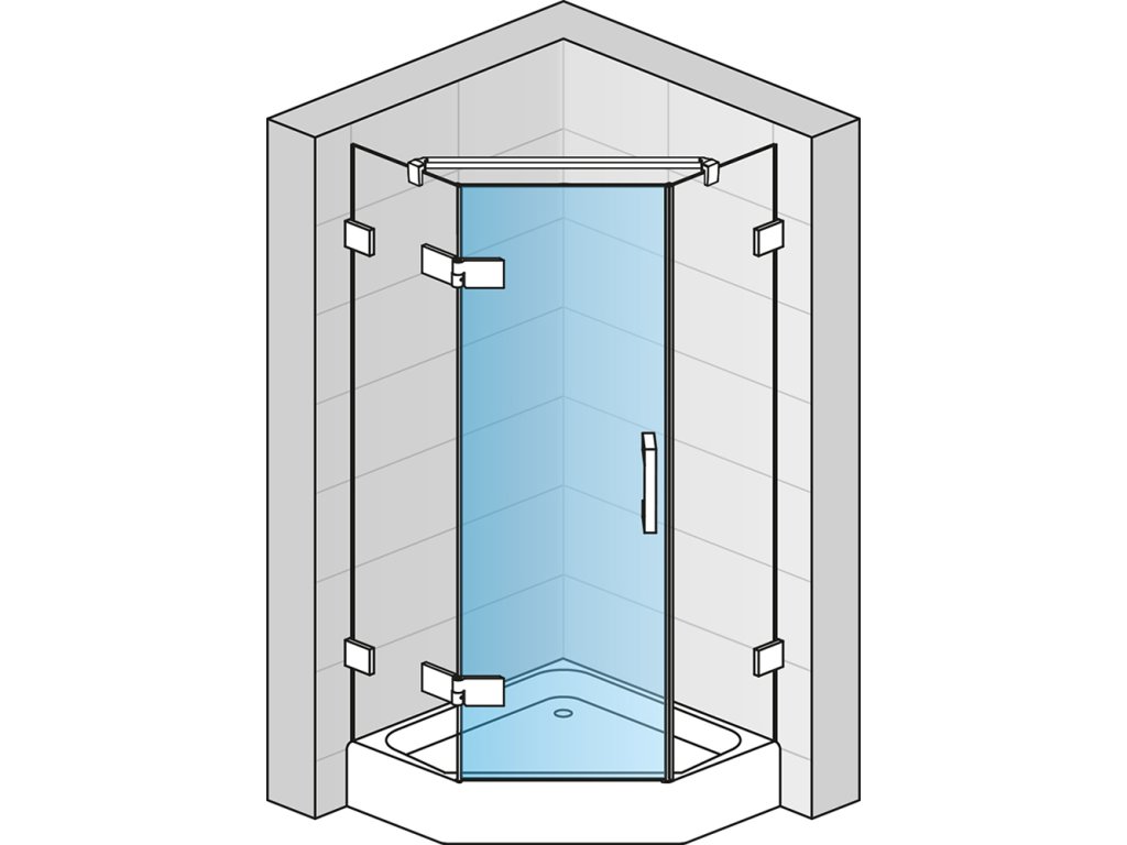 Sprchové dveře od společnosti RONAL (pro pětiúhelníkový sprchový kout) splňují vysoké nároky na design a individuální řešení koupelny. Kvalitní materiály jako masivní chromované panty (na vnitřní straně zapuštěné) a kování, 8mm bezpečnostní sklo, designové madlo. Magnetické těsnění, 5mm aluchromová prahová lišta. Antiplaková úprava skla AQUAPERLE pro snadné čištění. Sprchové dveře se otevírají ven. Jedná se o sprchové dveře pro pětiúhelník, ke kterým je nutno objednat boční stěnu pro pětiúhelník s vyrovnávacím profilem PUT51P nebo boční stěnu pro pětiúhelník s L-kováním PUT51.Doplňkové parametry