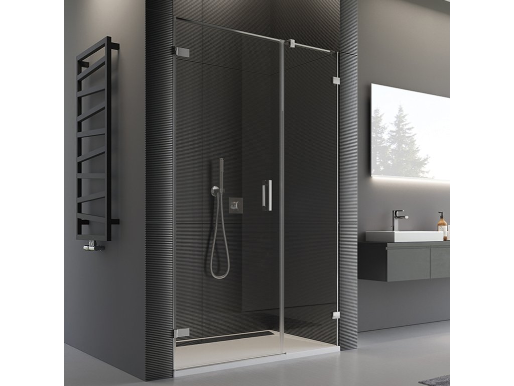 Bezrámová sprchová zástěna od společnosti RONAL splňuje vysoké nároky na design a individuální řešení koupelny. Kvalitní materiály jako masivní chromované panty (na vnitřní straně skla integrované) a kování, 8mm bezpečnostní sklo, designové madlo. Antiplaková úprava skla AQUAPERLE pro snadné čištění. 5mm aluchromová prahová lišta, těsnicí U-profil 50552, stabilizační vzpěra, magnetické těsnění. Sprchové dveře se otevírají ven.Doplňkové parametry