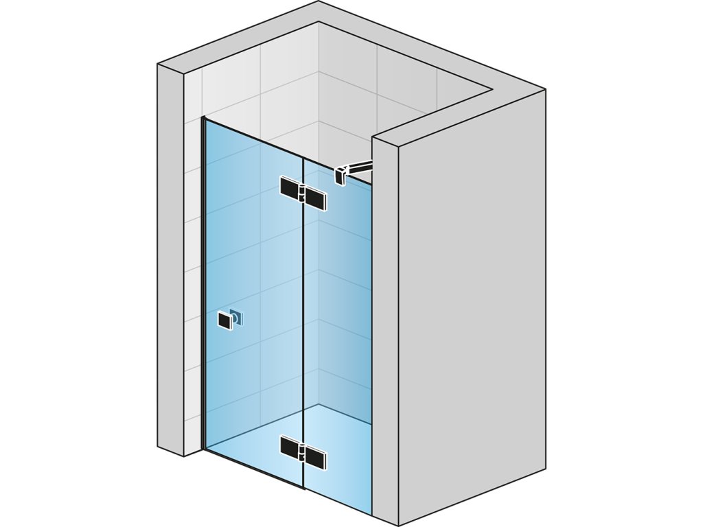 Jednokřídlé dveře s pevnou stěnou v rovině s vyrovnávacím profilem - montáž vpravo / 1 strana rohového vstupu AN13D10000607