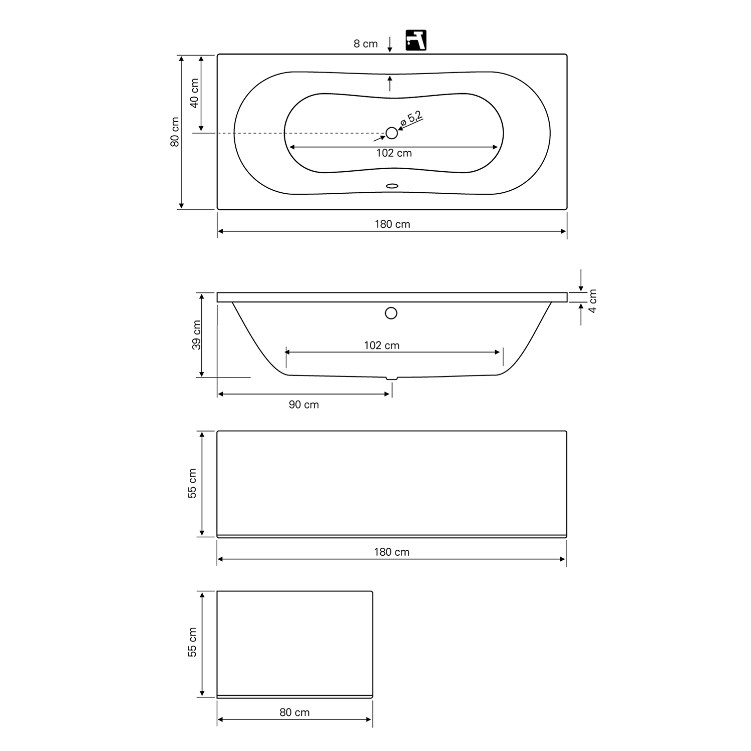 JIZERA vana 180x80x39cm, bílá