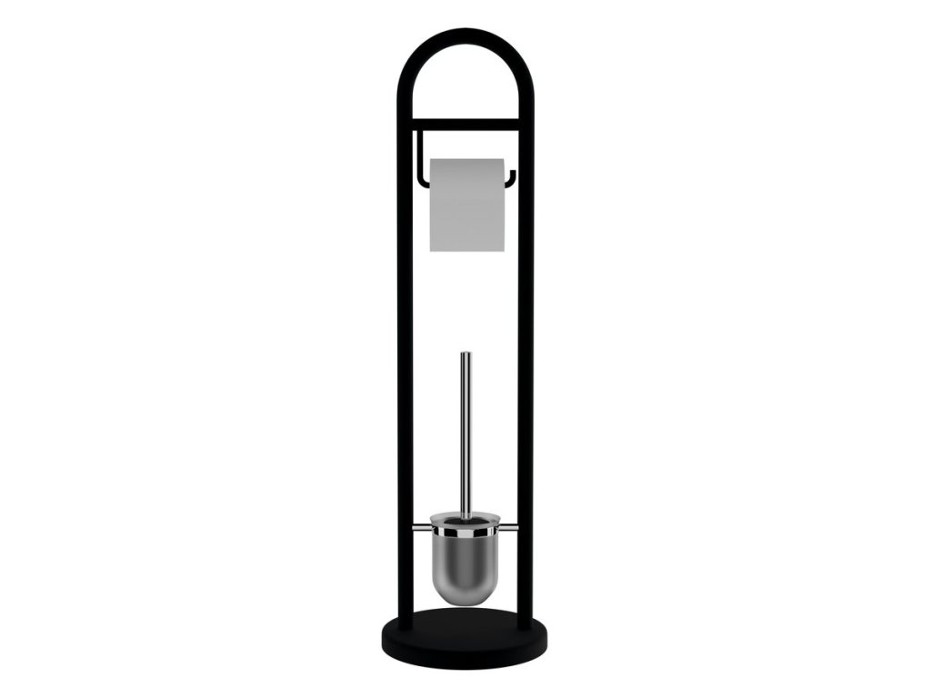 JUNDAH stojan s držákem na toaletní papír a WC štětkou, černá