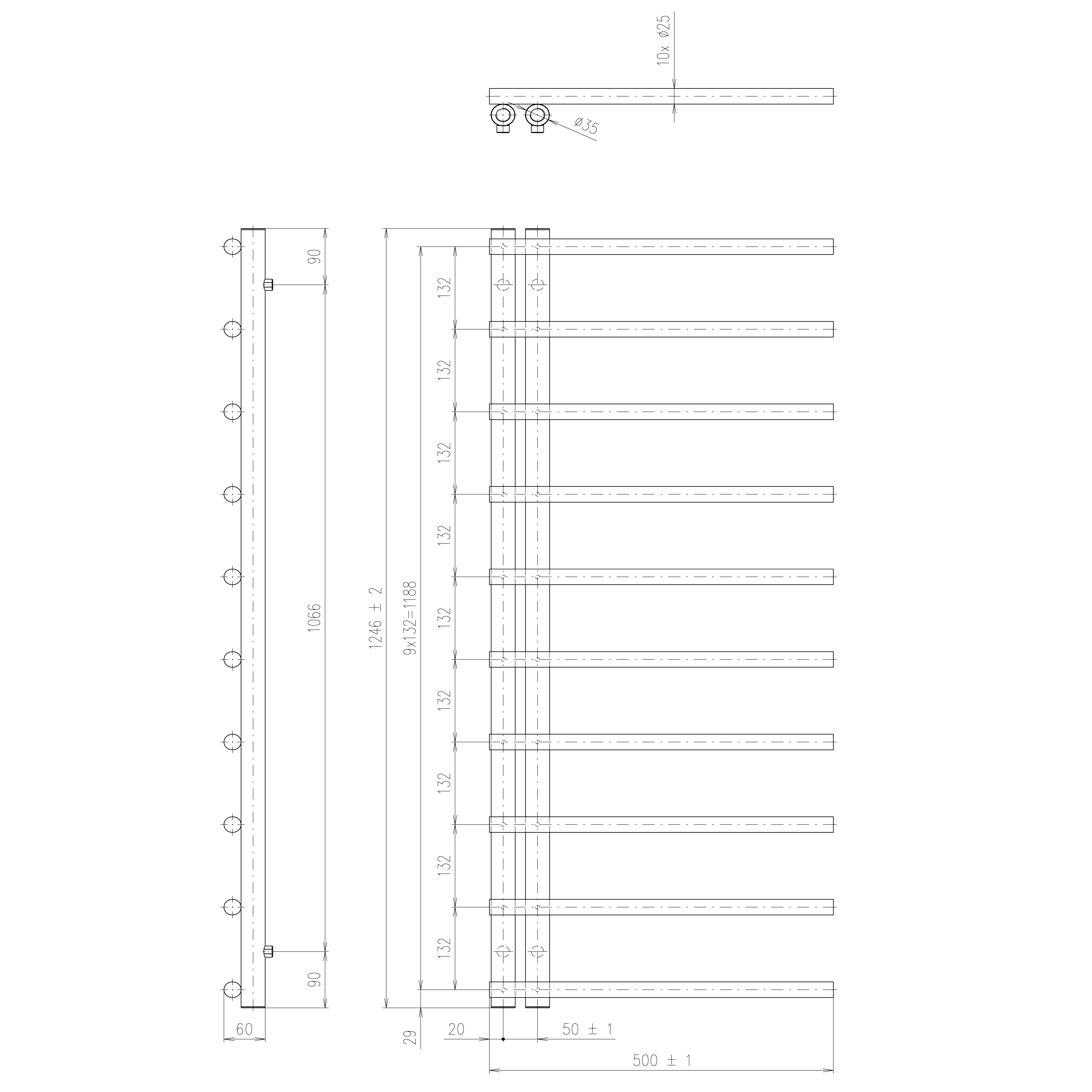 Praktická otopná tělesa JUSTINA vyrobená z ocelových trubek umožní pohodlné zavěšení ručníků z boku na horizontální tyče.