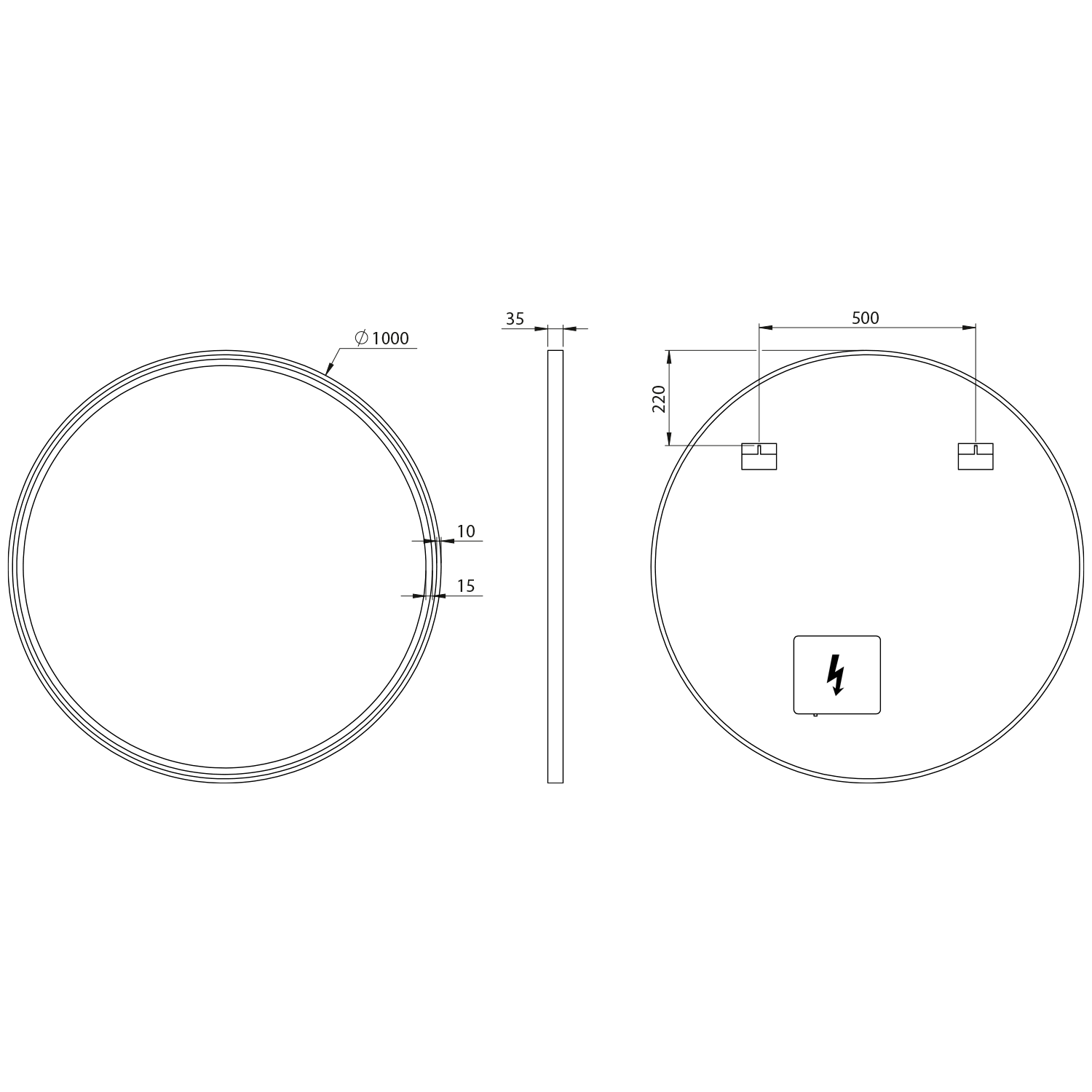 KADRIS kulaté zrcadlo s LED osvětlením ø 100cm, černá mat