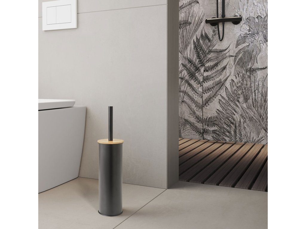 KENTA WC štětka na postavení, černá mat/bambus