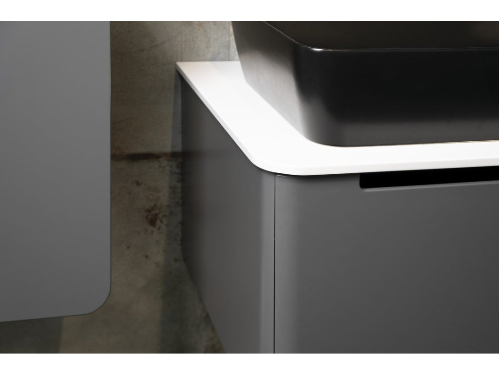Lakovaná série nábytku KERALA pro umyvadla na postavení v moderních matných barvách se vyznačuje výrazným designovým prvkem - zaoblenými boky a čelem zásuvky. Skříňky jsou jednozásuvkové, bezúchytkové a s plynulým dovíráním. V nabídce jsou 2 typy desek o tl.12 mm: bílá matná Rockstone a černá matná kompaktní deska PREMIO z vysokotlakého laminátu. Umyvadlo na desku lze libovolně umístit po celé šířce skříňky. Umyvadlové skříňky nabízíme v šířkách 80, 100, 120 a 140 cm a lze je doplnit o vysokou dvířkovou skříňku ve stejném oblém designu.