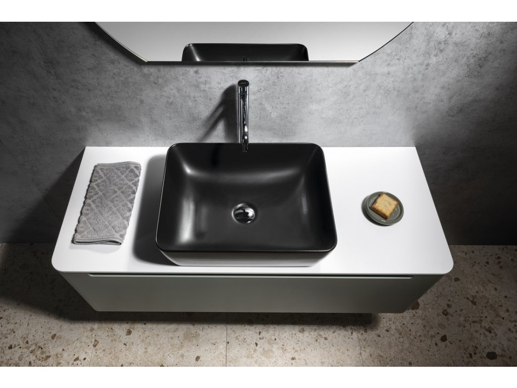Lakovaná série nábytku KERALA pro umyvadla na postavení v moderních matných barvách se vyznačuje výrazným designovým prvkem - zaoblenými boky a čelem zásuvky. Skříňky jsou jednozásuvkové, bezúchytkové a s plynulým dovíráním. V nabídce jsou 2 typy desek o tl.12 mm: bílá matná Rockstone a černá matná kompaktní deska PREMIO z vysokotlakého laminátu. Umyvadlo na desku lze libovolně umístit po celé šířce skříňky. Umyvadlové skříňky nabízíme v šířkách 80, 100, 120 a 140 cm a lze je doplnit o vysokou dvířkovou skříňku ve stejném oblém designu.