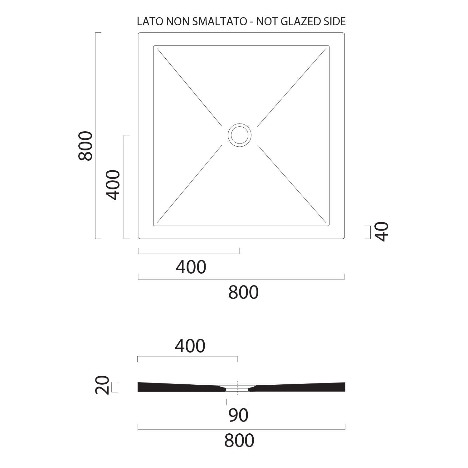 Keramická sprchová vanička, čtverec 80x80x2cm, bílá mat