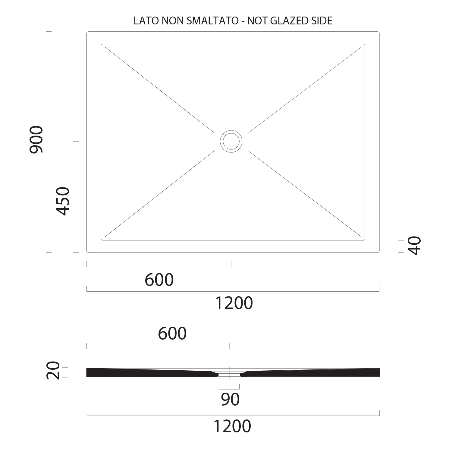 Boky vaniček, které jsou neglazované (určené k zazdění do zdi, či pod obklad), jsou na technickém výkresu označeny "not glazed side".