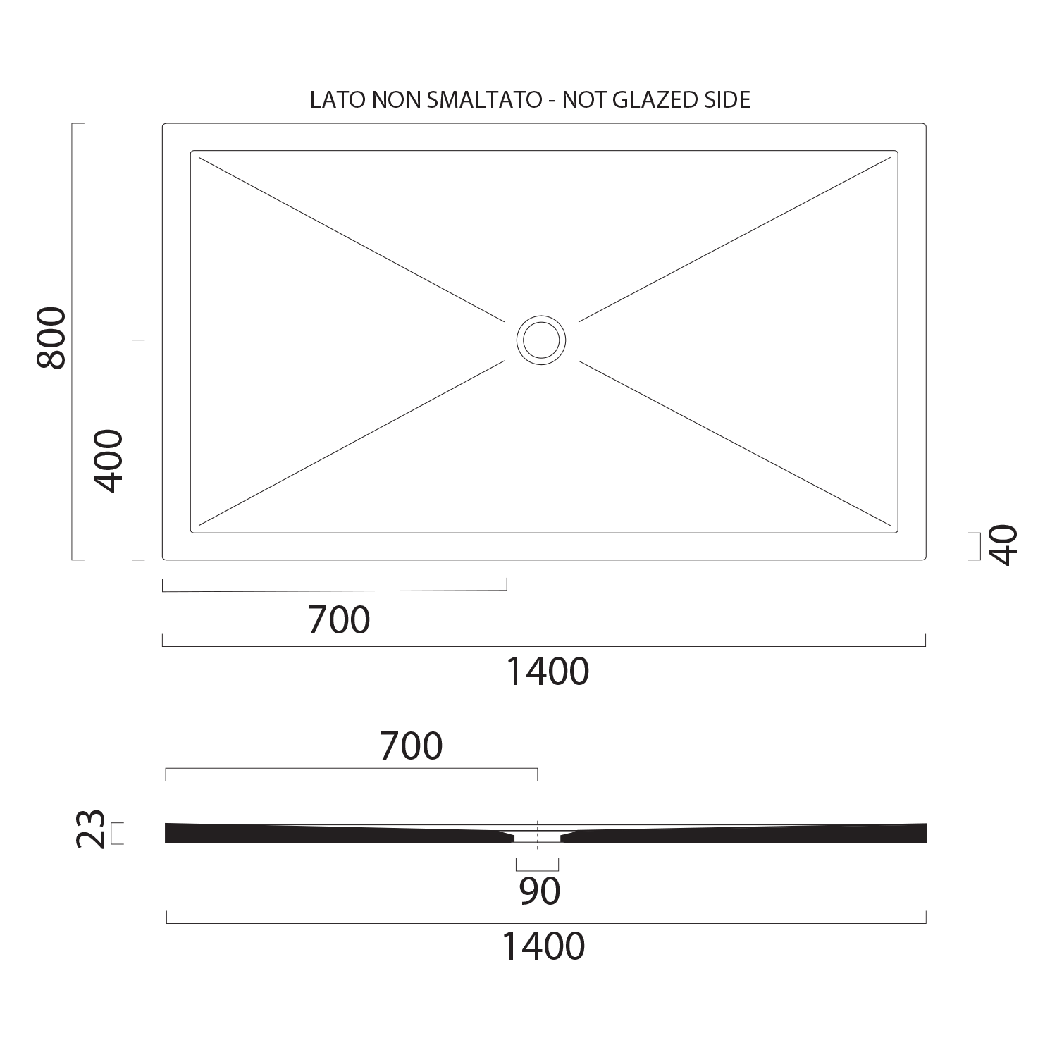 Boky vaniček, které jsou neglazované (určené k zazdění do zdi, či pod obklad), jsou na technickém výkresu označeny "not glazed side".