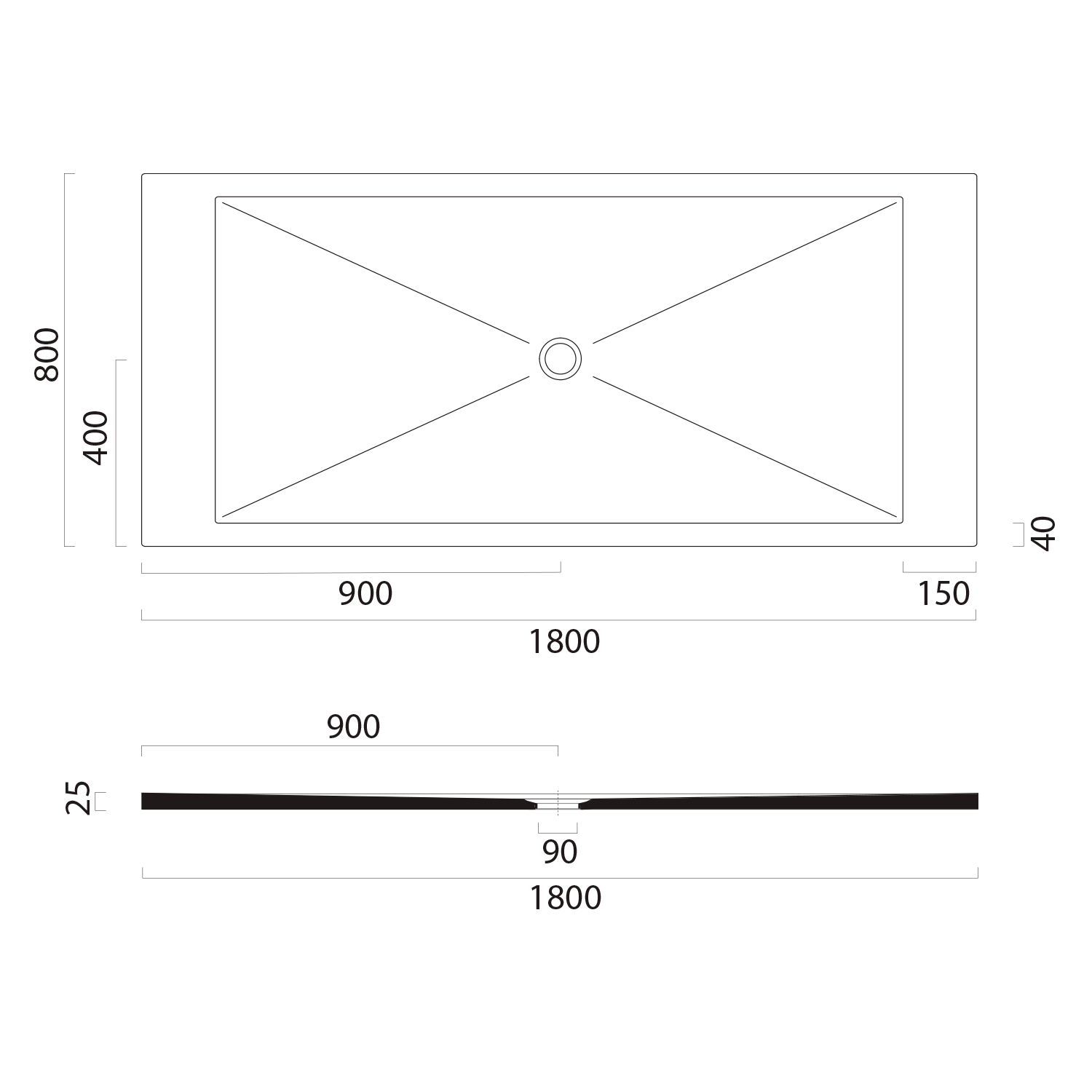 Keramická sprchová vanička, obdélník 180x80x2cm, černá mat