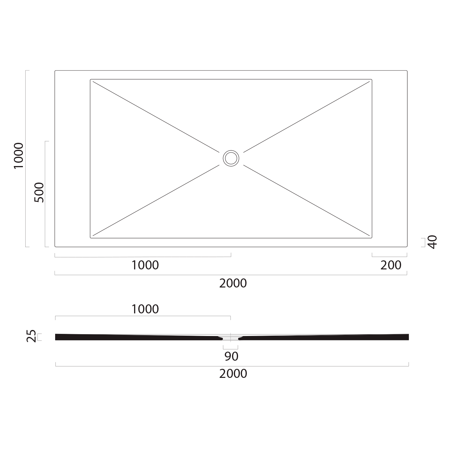 Keramická sprchová vanička, obdélník 200x100x2cm, černá mat