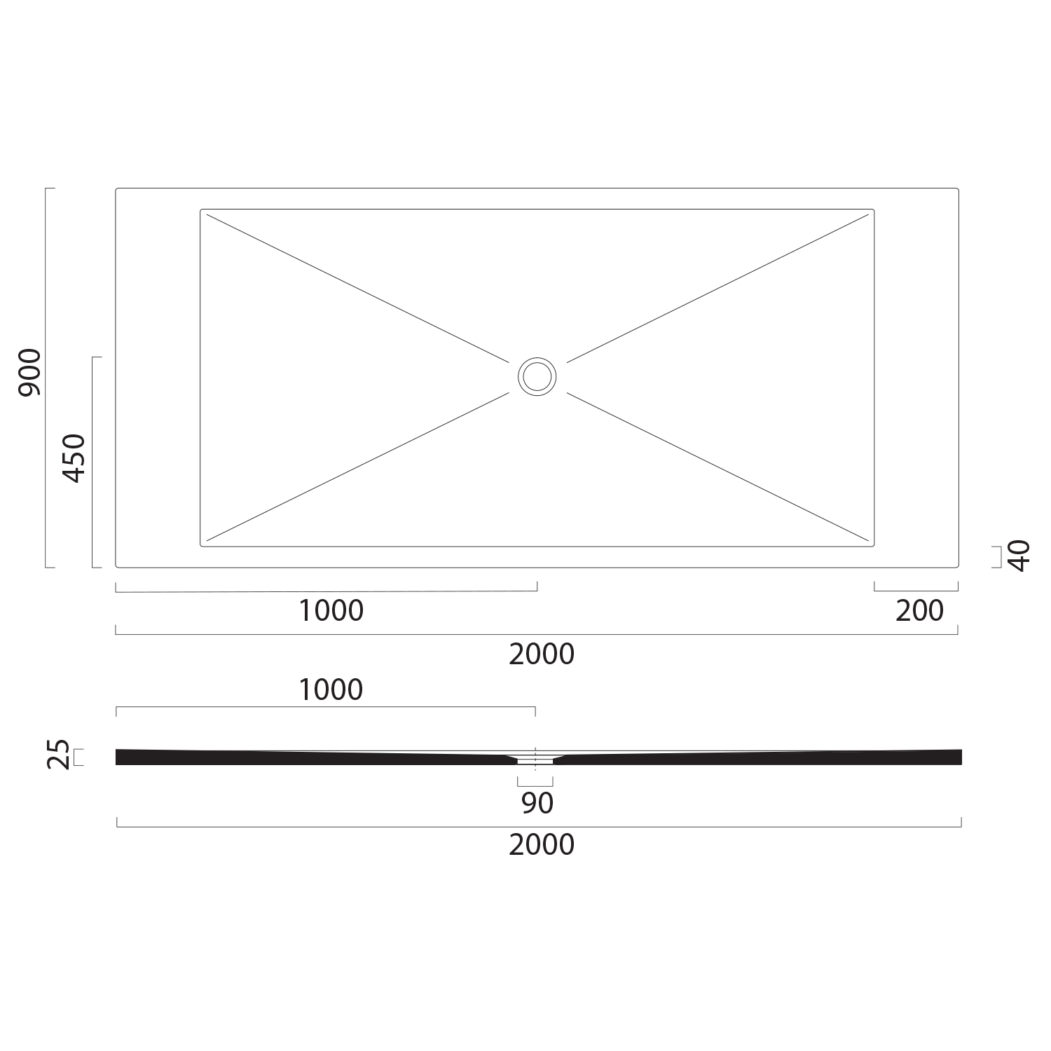 Keramická sprchová vanička, obdélník 200x90x2cm, agave mat