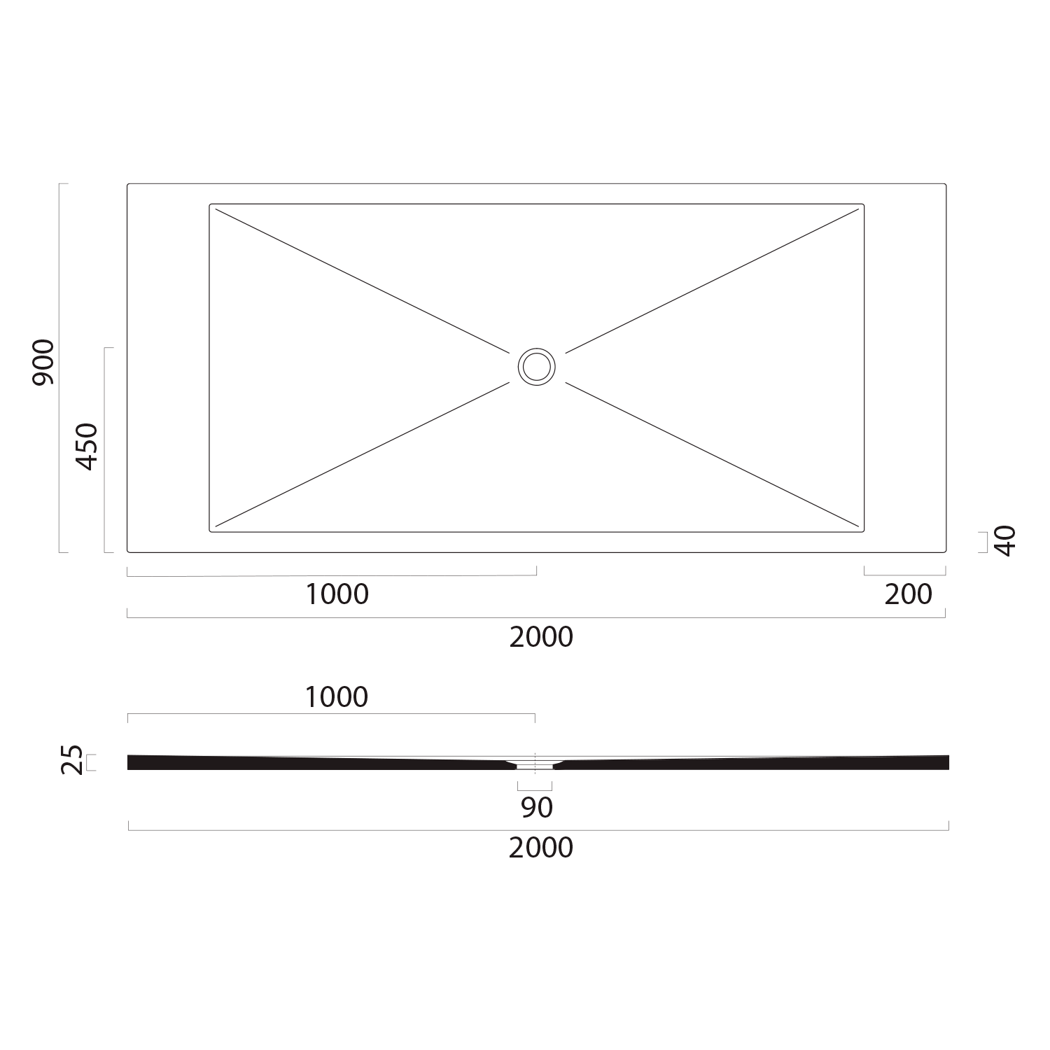 Keramická sprchová vanička, obdélník 200x90x2cm, bílá mat