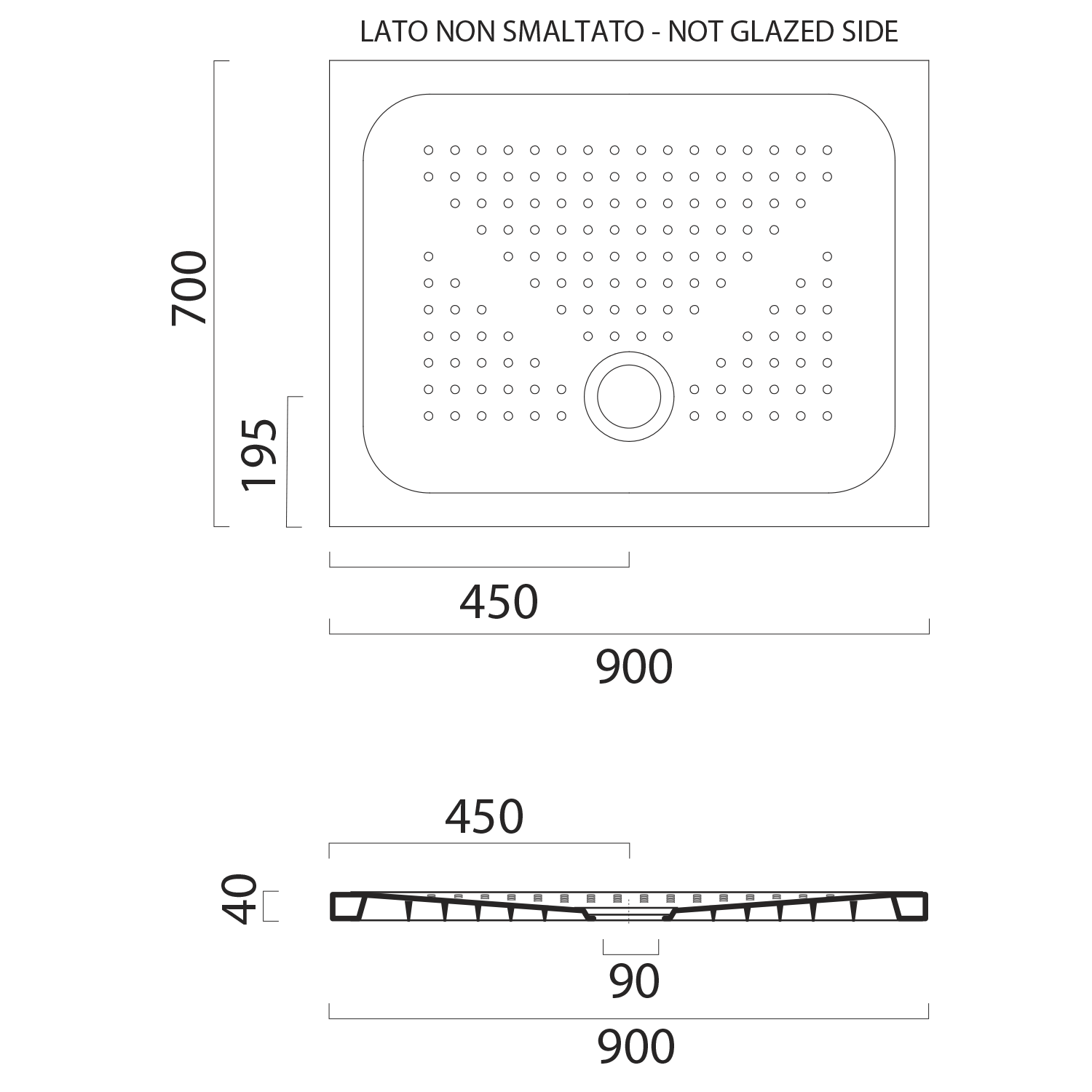 Boky vaniček, které jsou neglazované (určené k zazdění do zdi, či pod obklad), jsou na technickém výkresu označeny "not glazed side".