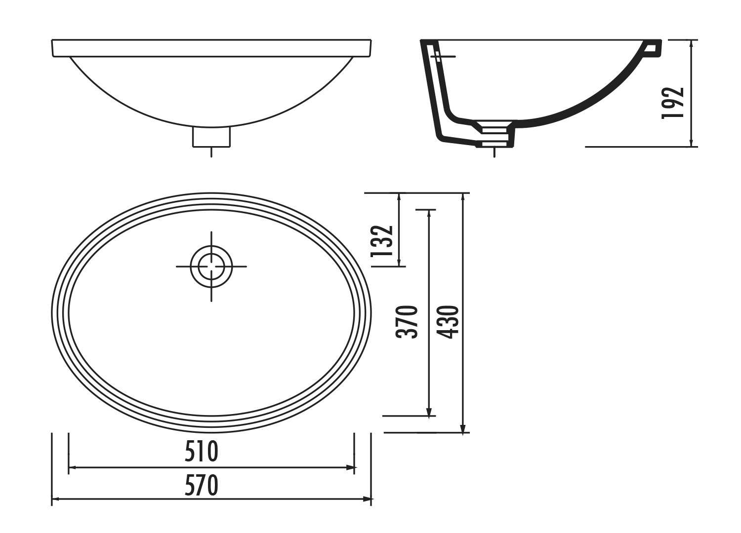 Keramické umyvadlo pod desku, 57x43cm, bílá