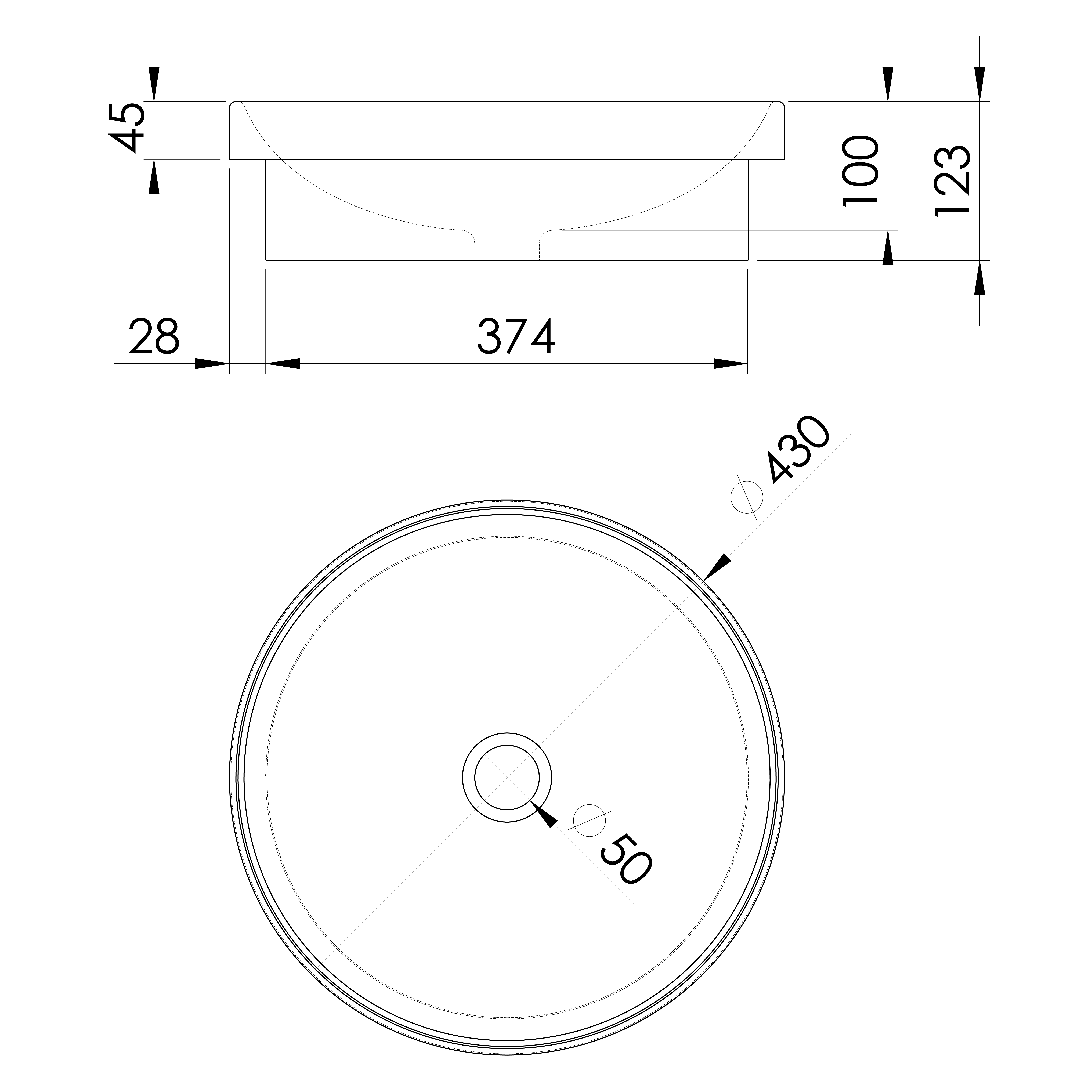 Keramické umyvadlo zápustné, průměr 43cm, bílá
