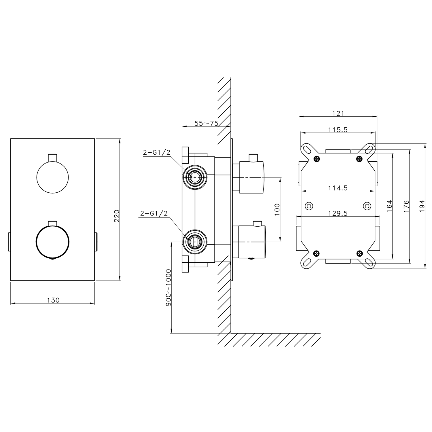 KIMURA podomítková sprchová termostatická baterie, box, 2 výstupy, chrom