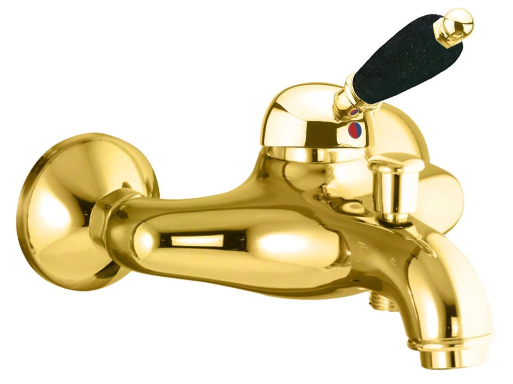 KIRKÉ BLACK nástěnná vanová baterie, černá páčka, zlato