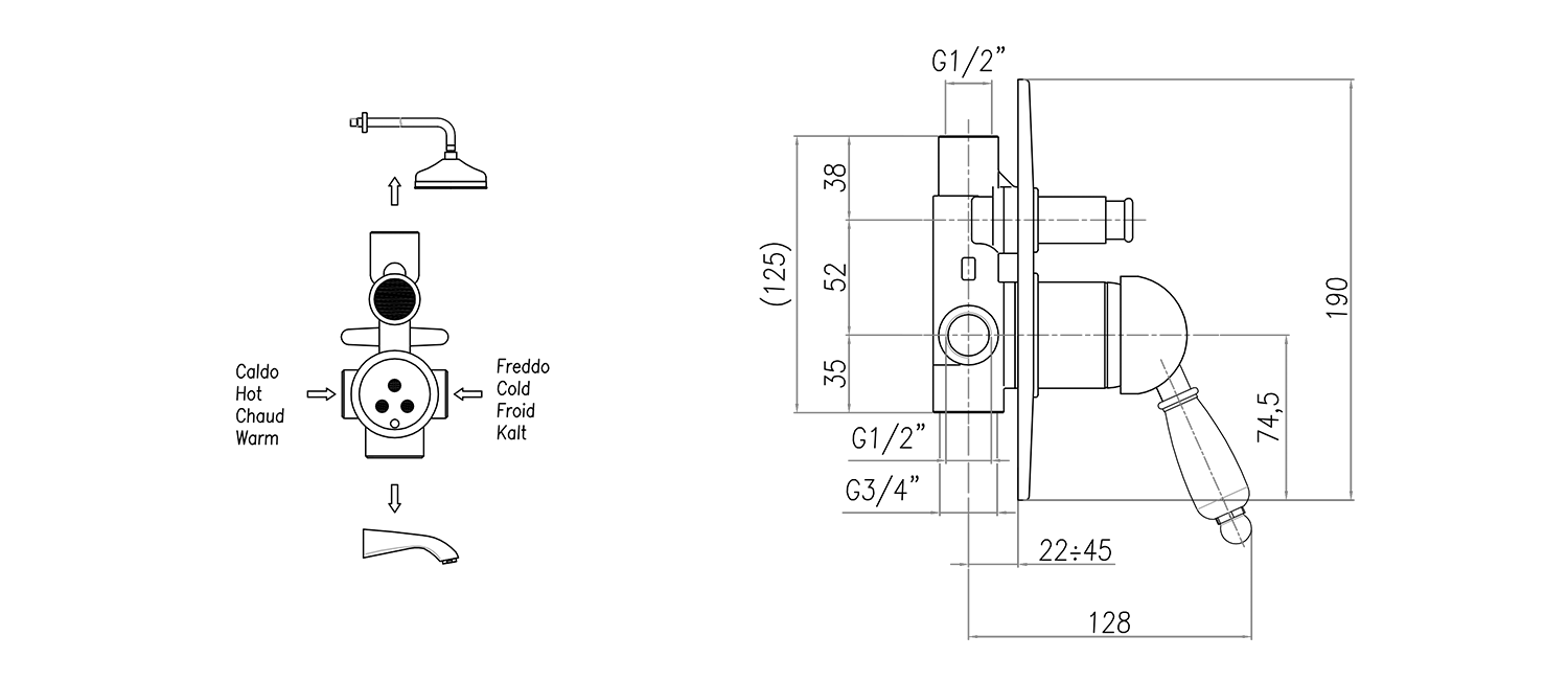 | Přepínač na sprchu: | Tlakový |