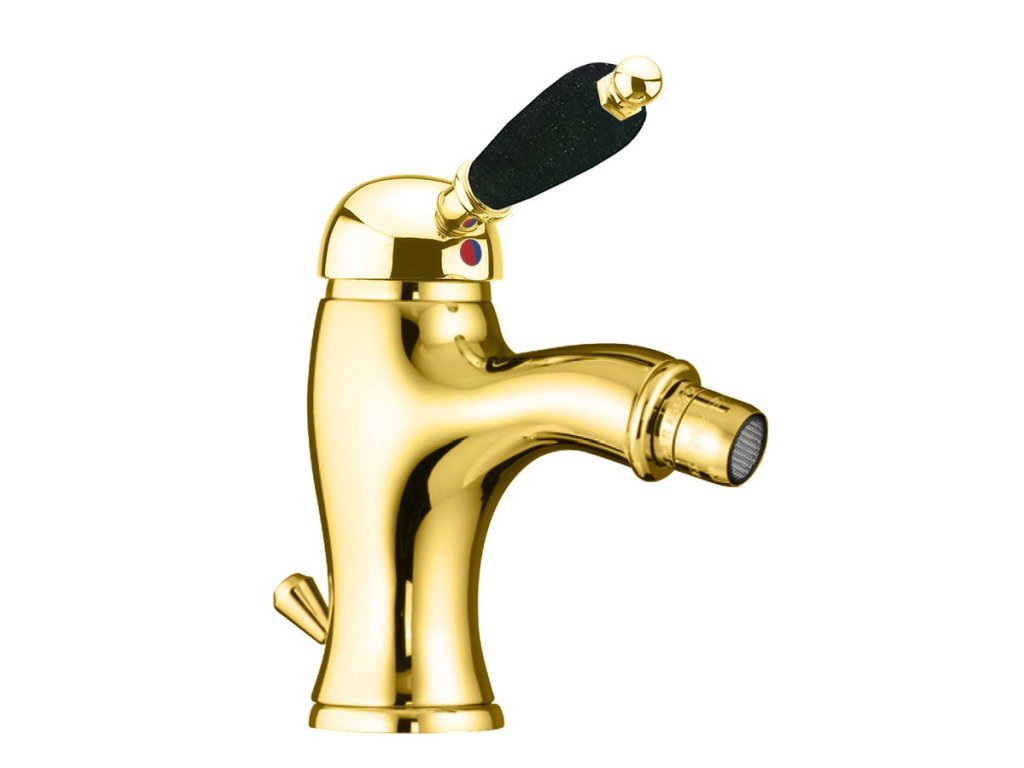 KIRKÉ BLACK stojánková bidetová baterie s výpustí, černá páčka, zlato