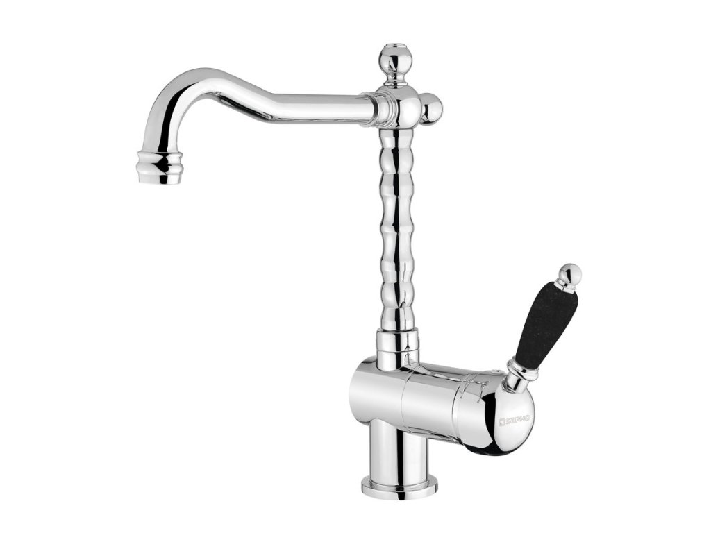 KIRKÉ BLACK stojánková dřezová baterie, černá páčka, chrom
