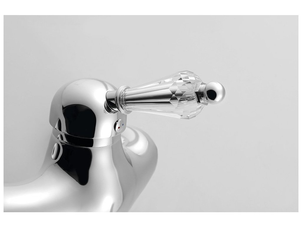 Vodovodní baterie KIRKÉ CRYSTAL se svým designem řadí mezi baterie, které můžete použít jak v koupelně moderní, tak i v koupelně zařízené v retro stylu. Oproti kohoutkovým retro bateriím poskytují výhodu v pákovém ovládání. Proto je mnohem snadnější nastavit teplotu i průtok vody. Baterie mají také mnoho „tváří“ ve smyslu barevného provedení. V naší nabídce je naleznete v chromu, bronzu a zlatě. Baterie se pyšní páčkou s krystalem Swarovski.