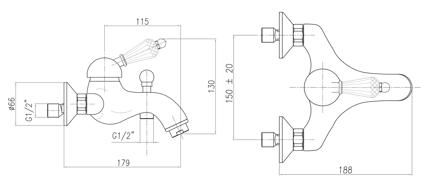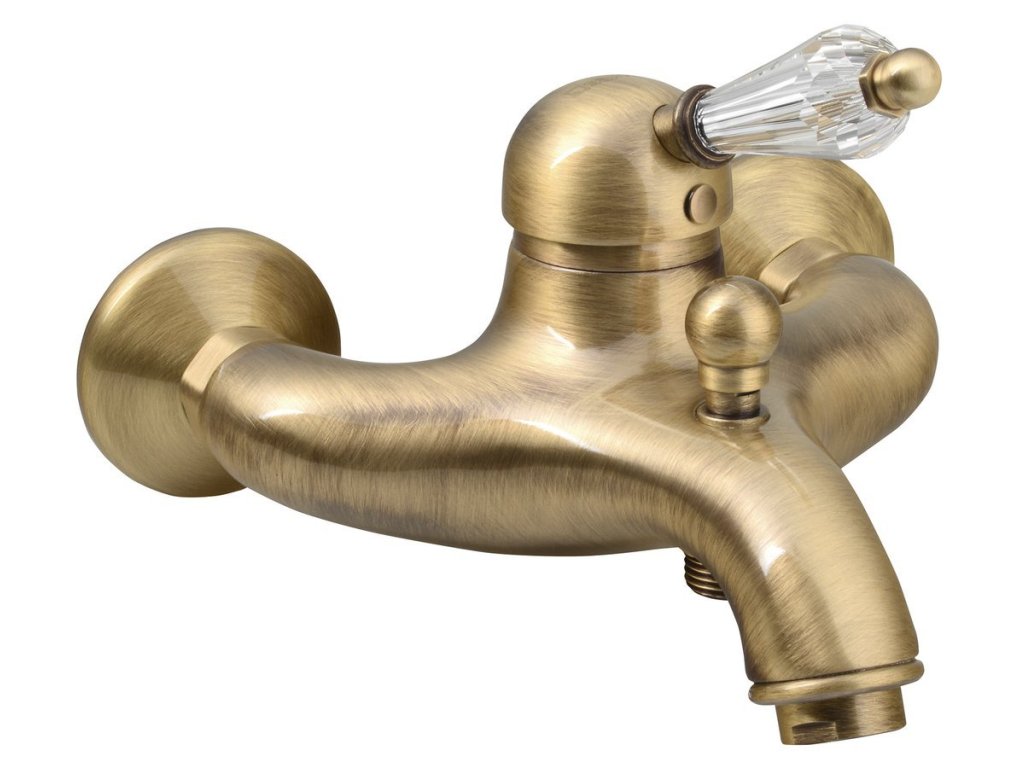 KIRKÉ CRYSTAL nástěnná vanová baterie, páčka krystal, bronz