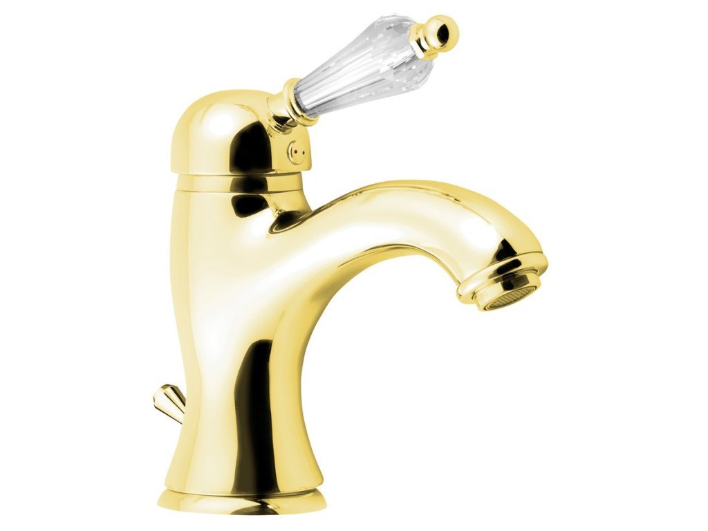 KIRKÉ CRYSTAL stojánková umyvadlová baterie s výpustí, páčka krystal, zlato