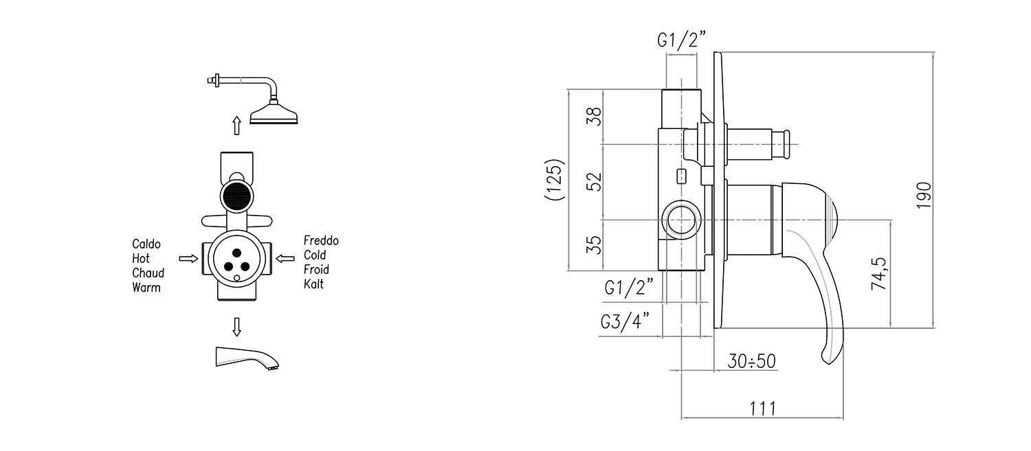 | Přepínač na sprchu: | Tlakový |