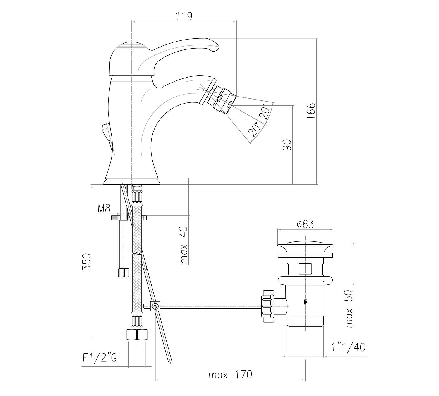 KIRKÉ stojánková bidetová baterie s výpustí, bronz