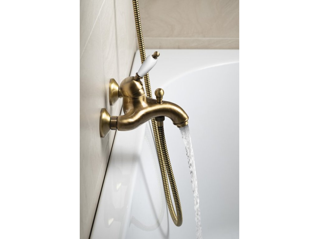 KIRKÉ WHITE nástěnná vanová baterie, bílá páčka, bronz