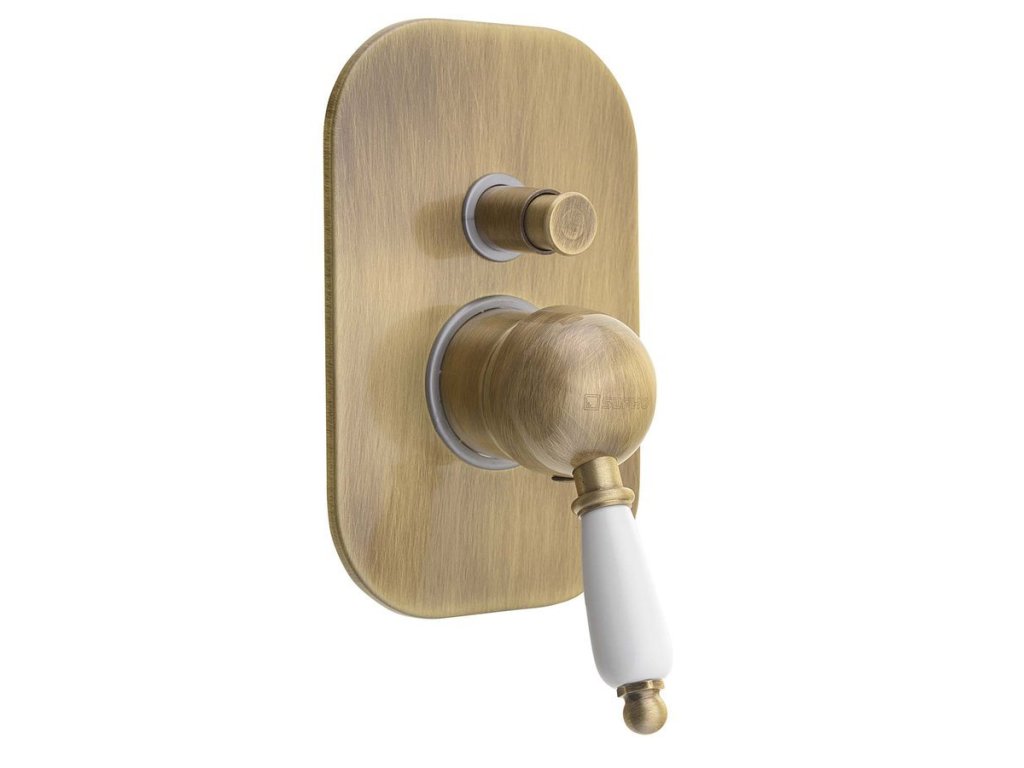 KIRKÉ WHITE podomítková sprchová baterie, 2 výstupy, bílá páčka, bronz