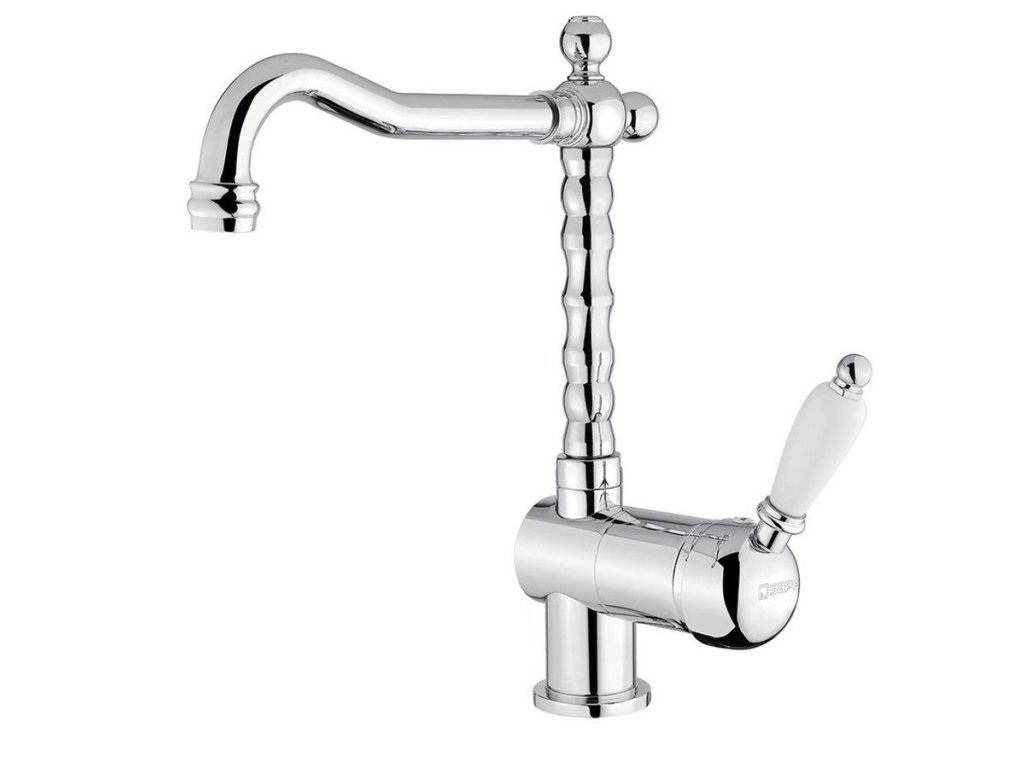 KIRKÉ WHITE stojánková dřezová baterie, bílá páčka, chrom