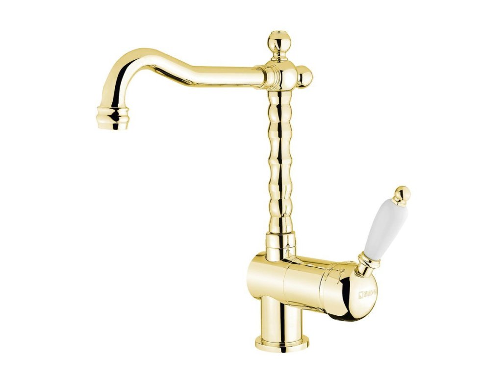 KIRKÉ WHITE stojánková dřezová baterie, bílá páčka, zlato