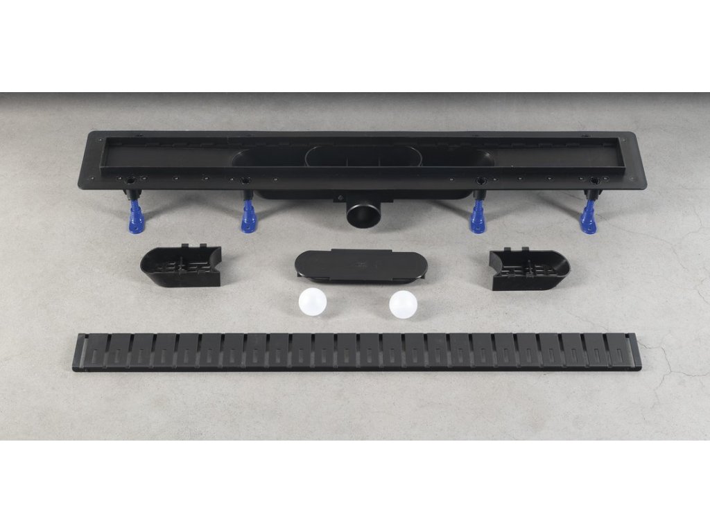 KLAVER podlahový žlab s nerezovým roštem, L-710, DN50, černá mat