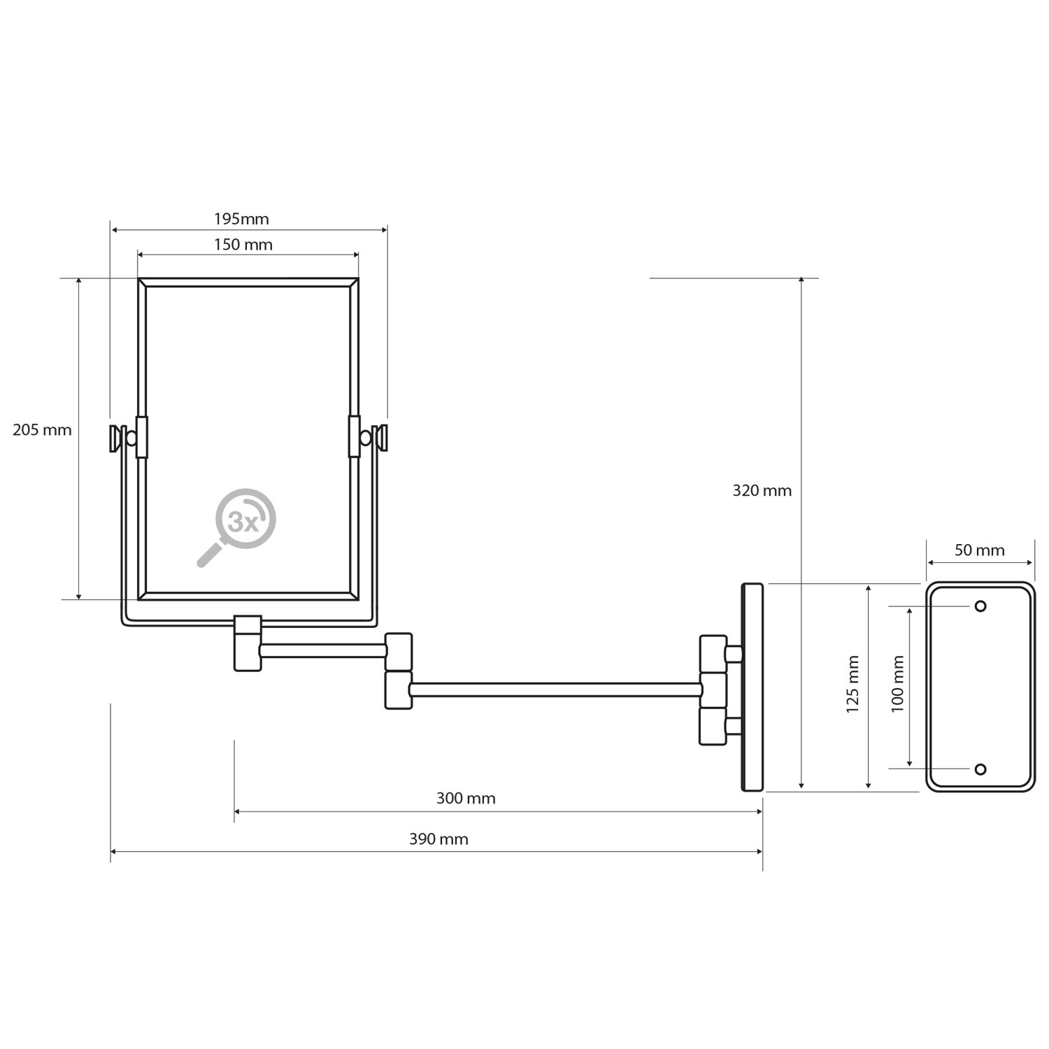 Kosmetické zrcátko závěsné, 150x205mm, oboustranné, chrom