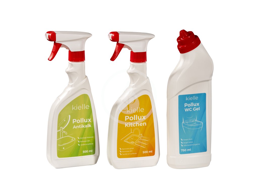 Neředěný přípravek kielle Pollux Antikalk naneste na znečištěný povrch, nechte působit dle míry znečištění, mechanicky setřete houbičkou či hadříkem, a nakonec důkladně opláchněte. Pozor – nepoužívejte na povrchy s poškozenou glazurou!