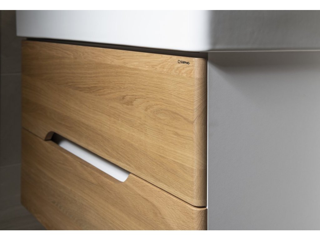 Série MEDIENA je kombinací bílé matné barvy a zásuvek z masivního dřeva, které svým zaoblením kopírují tvar keramických umyvadel SAND od italského výrobce GSI. Zásuvky s netradičním tvarem výřezu pro otvírání jsou vybaveny výsuvy BLUM s funkcí tlumení BLUMOTION s doživotní zárukou. Skříňky nabízíme buď celé v bílém matném provedení nebo v kombinaci korpus matná bílá a čela zásuvek ve 2 dekorech dubového dřeva (voskový olej dub natural a dub graphite). Šířky skříněk jsou 60, 80, 100 a 120 cm. V nabídce jsou též 2 typy doplňkových policových skříněk. Skříňku s prádelním košem získáte jednoduchým vyjmutím spodní police u doplňkové skříňky šíře 35 cm a instalací látkového prádelního koše na suchý zip.