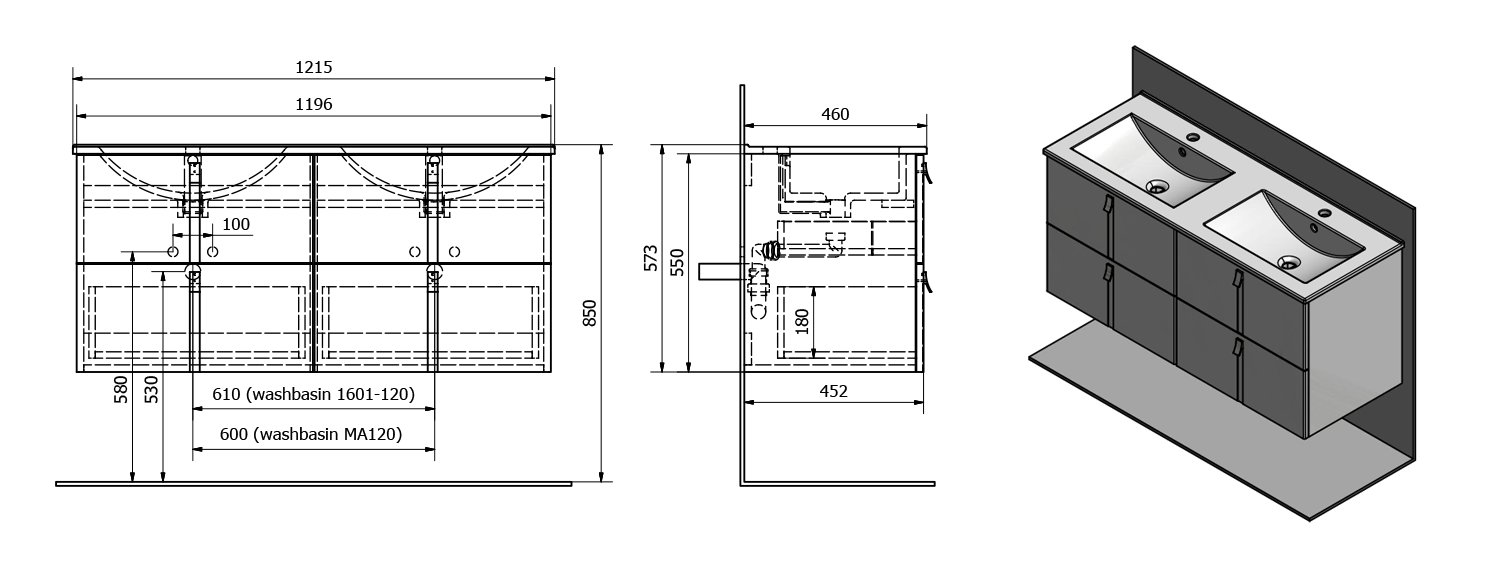 Koupelnový set MITRA 120, dvojumyvadlo, bordo