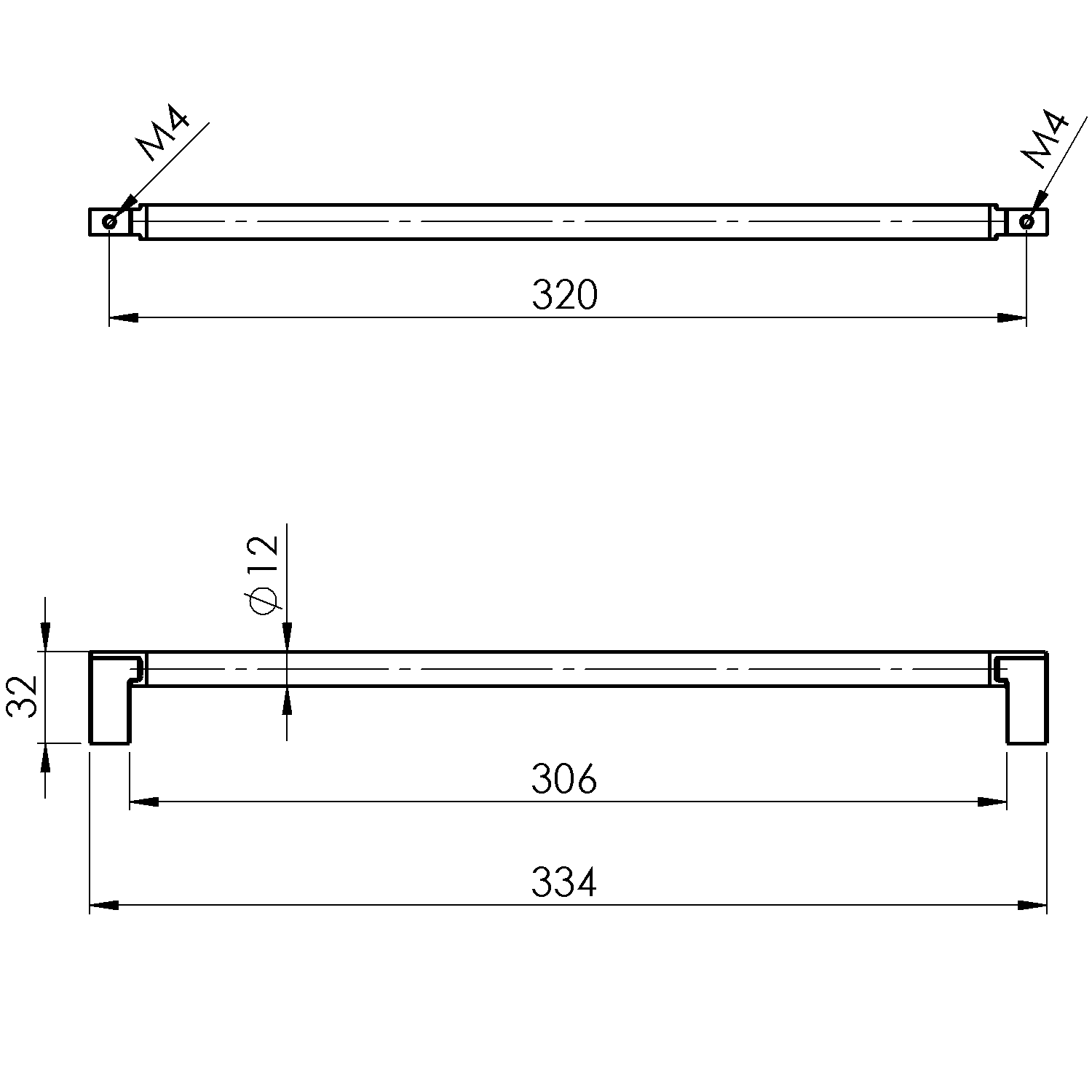 Kovová úchytka vroubkovaná, 334/320mm, starozlatá