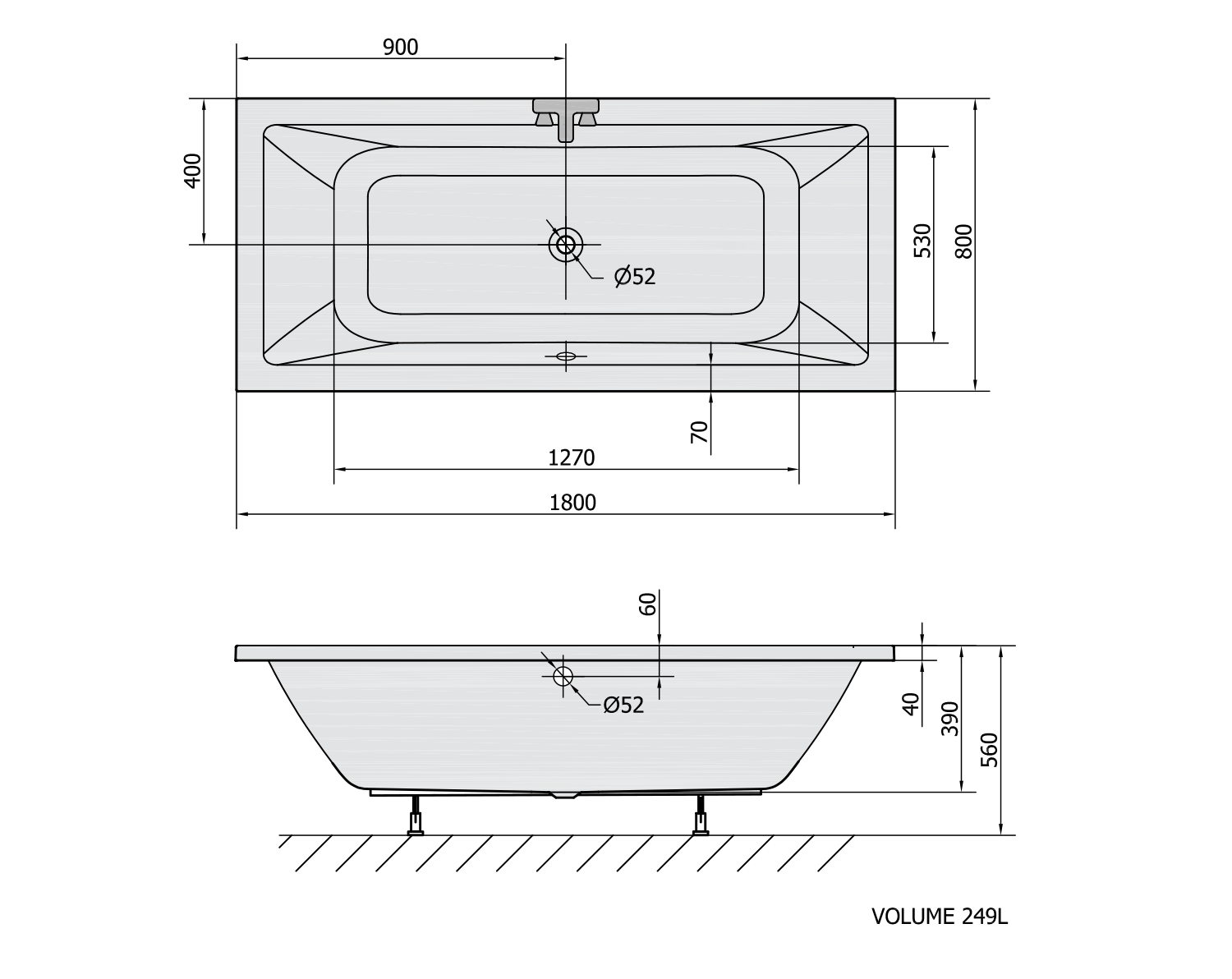 KRYSTA obdélníková vana 180x80x39cm, šedá