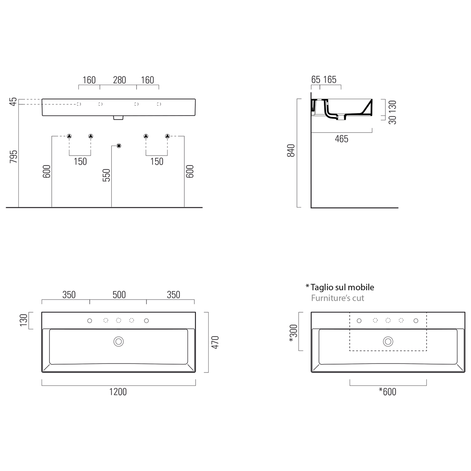 Součástí série umyvadel jsou navíc dvě kulatá umyvadla na desku a dvě obdélníková vestavná umyvadla, všechna s velmi štíhlými hranami.