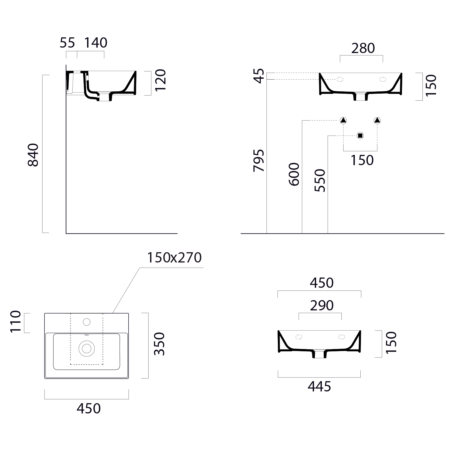 Součástí série umyvadel jsou navíc dvě kulatá umyvadla na desku a dvě obdélníková vestavná umyvadla, všechna s velmi štíhlými hranami.