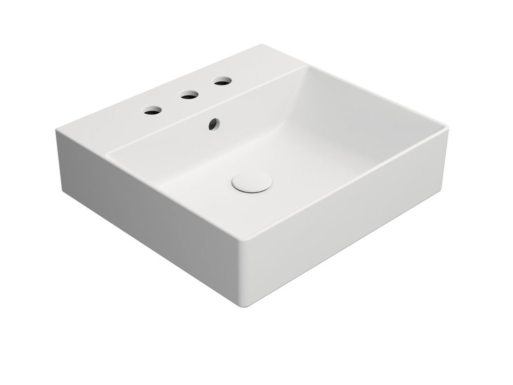 KUBE X keramické umyvadlo 50x47cm, broušená spodní hrana, 3 otvory, bílá mat